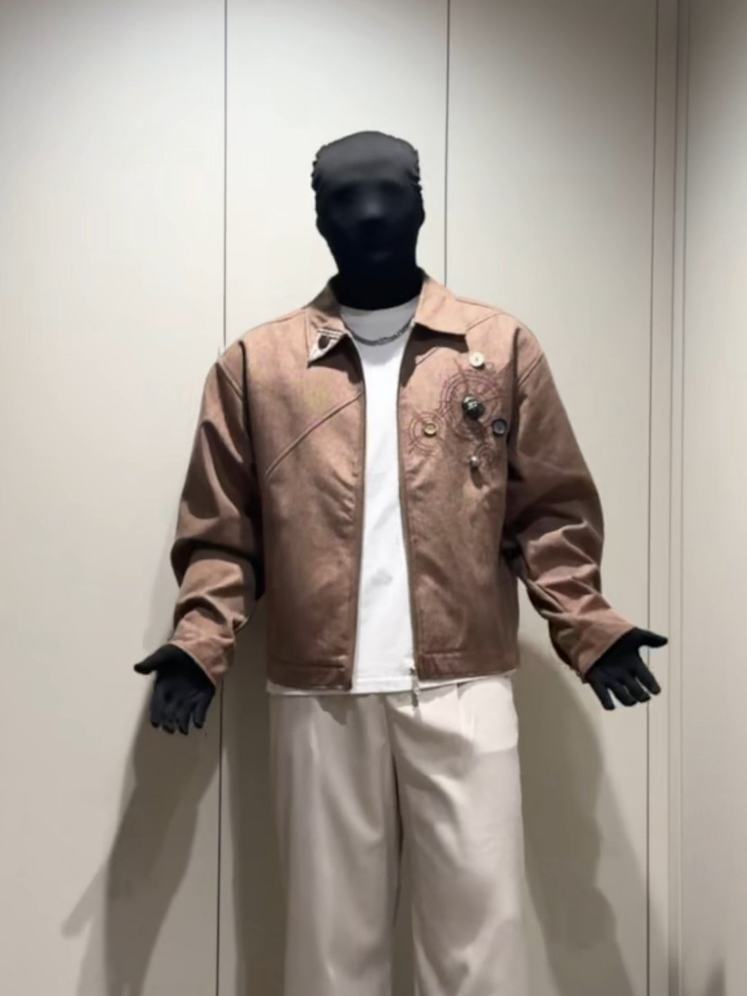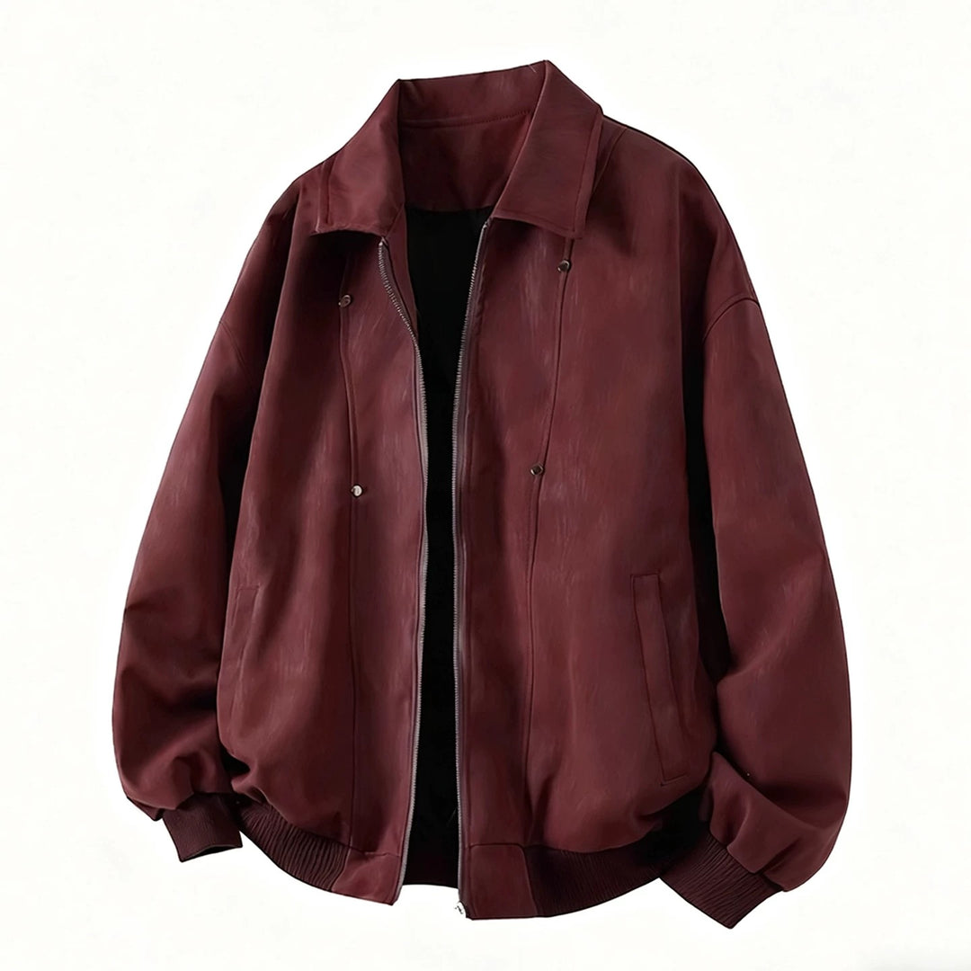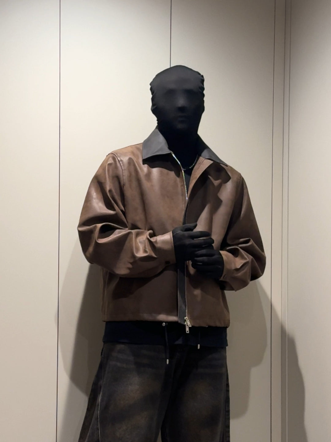 [DAZHONGMA] DYED CROPPED FAUX LEATHER JACKET st5031